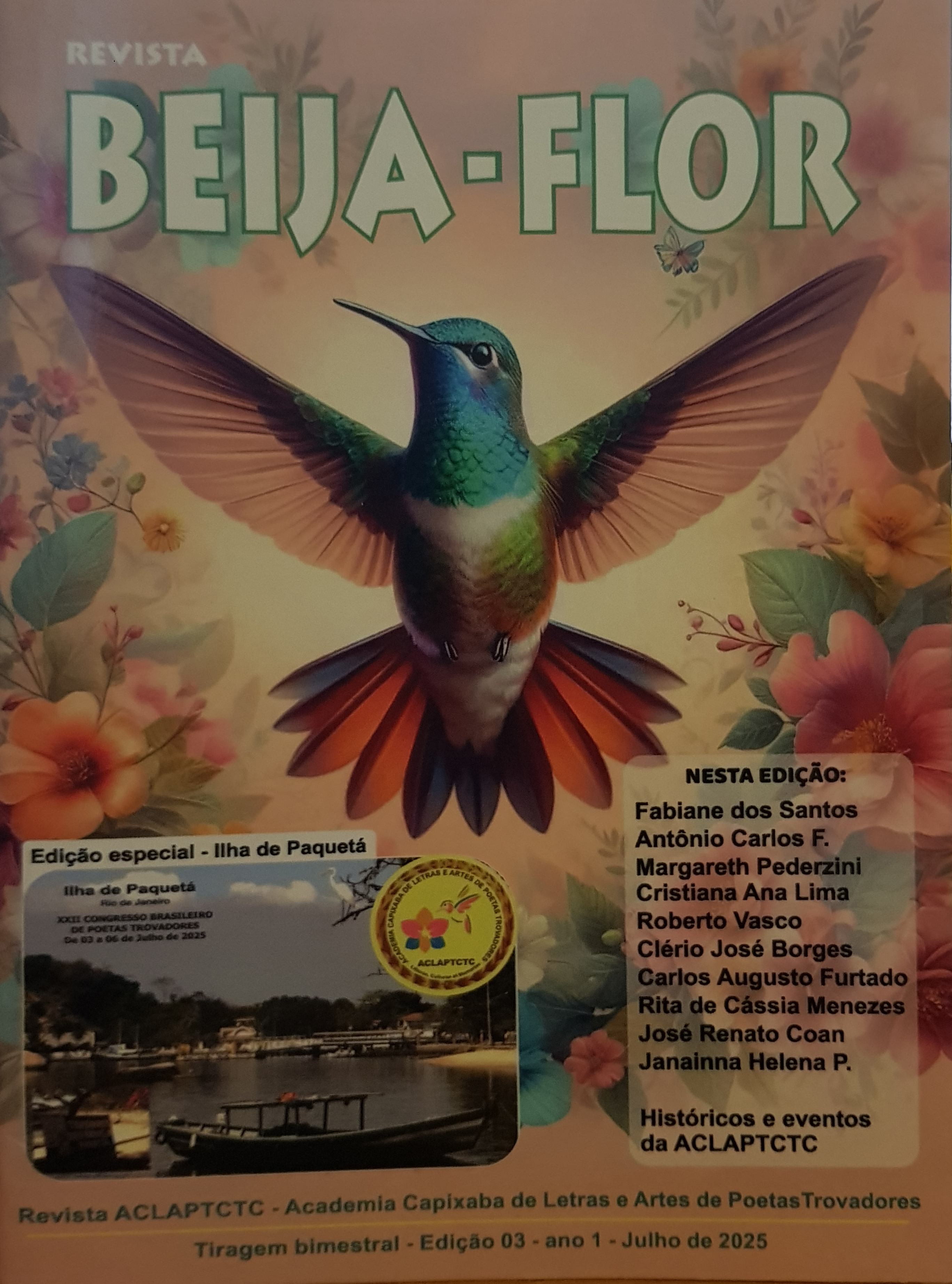 REVISTA BEIJA-FLOR - Academia Capixaba de Letras e Artes de Poetas Trovadores. Edição 03 - ano 1 - Julho de 2025. 24 p. No. 10 420 ISSN 9 786501 366654
