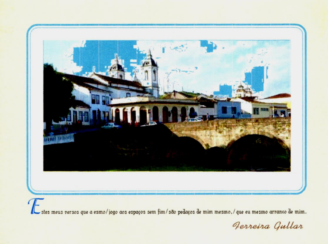Guaches, nanquins e gravuras [de] Giancarlo Bonfanti. Rio de Janeiro: Contracapa, 2010. 72 p. ilus. Retratos de Gullar em p&b e composições em cores sobre páginas duplas, dobradas. Formato 28x23 cm; impressão sobre papel Scheufelen BVS 170 g/m2, em novembro de 2010, 1.500 exemplares na cidade de Petrópolis, Rio de Janeiro dos quais seis, acompanhados de um guache, um nanquim e três gravuras, seis, acompanhados de um nanquim e três gravuras, todos eles de Giancarlo Bonfanti, foram encadernados, respectivamente numerados de I a VI, VII a XII, e 1 a 18, assinados e acondicionados em caixas revestidas de tecido. ISBN 978-85-7740-086-7 (encadernado). (LA) A edição convencional é vendida em livrarias. ISBN 978-85-7740-087-4 (brochura) Col. A.M. (EE)