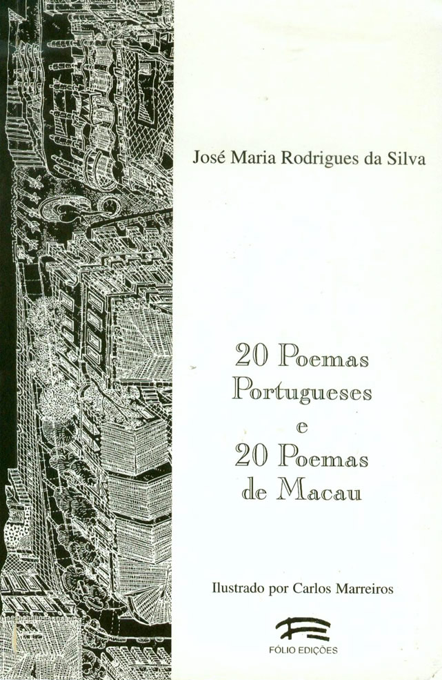 SILVA, José Maria Rodrigues da. 20 Poemas portugueses e 20 Poemas de Macau. Ilustrado por Carlos Marreiros. Porto: Fólio Edições, 2001. 91+91 p. Livro com duas capas, uma em português e outra em chinês; o livro é como as edições canadenses, que começam nas duas duas capas: na capa e sobrecapa...