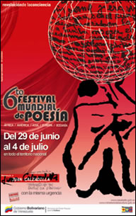 O 6º Festival Mundial de Poesia da Venezuela aconteceu de 28 de junho a 4 de julho de 2009 em Caracas e em outras cidades do país. Um megaevento que reuniu poetas de todas as regiões do mundo. Para a sexta edição trouxe poetas da Argentina, do Chile, da Bolívia, do Brasil, do Equador, do Paraguai, da Colômbia, do Peru, do México, da Guatemala, de El Salvador, de Cuba, de Porto Rico, dos Estados Unidos da América, do Canadá, da Hungria, da Austrália, do Líbano, da Palestina, da Nigéria, etc, incluindo representantes de etnias indígenas. As sessões magnas aconteceram na magnífica sala do Teatro Teresa Carreño, de Caracas, e em outras salas da cidade e em todos os estados venezuelanos, com convidados estrangeiros e de todas as regiões do país. Lançamentos de livros, leituras em hospitais, presídios, escolas, praças públicas; shows folclóricos e de música popular e erudita, exposições e conferências animaram as diversas atividades, sempre com um público numeroso e participante.