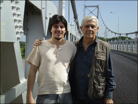 Com o poeta paraguaio Ernesto Centurión na ponte que divide os estados de Apure e Barinas, na Venezuela.