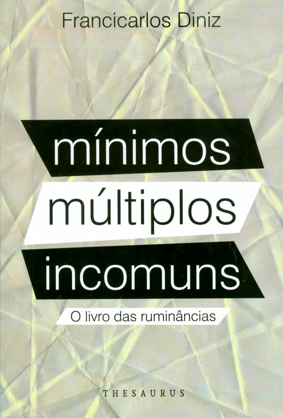 DINIZ, Francicarlos. mínimos múltiplos incomunes. O livro das ruminâncias. Brasília: Thesaurus, 2013. 128 p. 14x21 cm ISBN 978-85-409-0231-2 Arte da capa: Jhobert Douglas. Col. A.M.