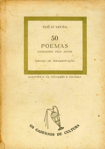 MOURA, Emilio. 50 poemas escolhidos pelo autor. Rio de Janeiro: Serviço de Documentação, Ministério a Educação e Cultura, 11961 96 p. 14x19,5 cm. (OsCadernos de Cultura, 126) Col. A.M. (EA)