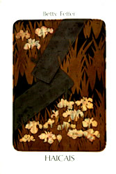 FEFFER, Betty. Haicais. São Paulo: Massao Ohno Editor, 1995. 143 p. 15x23 cm. capa dura, sobrecapa. Capa: pintura em tampo de caixa laqueada, Korin Ogata, 1690. Foto da autor na orelha, texto de apresentaçõ de Riberto Gambini. Tiragem: 500 exs. Col. A.M. (EE)