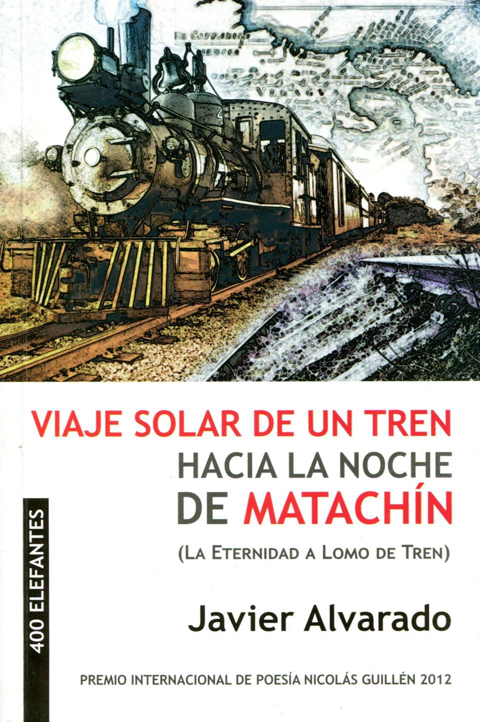 ALVARADO, Javier. Viaje solar de un tren hacia la noche de Matachín (La eternidade a lomo de tren). Managua, Nicaragua: 400 Elefantes, 2017. 43 p. 14x21,5 cm. Fotografía de la solapa: Marta Leonor Gonzálaez. “Premio Internacional de Poesía Nicolás Guillén 2012”.