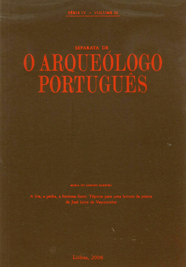 BARROSO, Maria do Sameiro. A lira, a pedra, a formosa fonte. Tópicos para uma leitura da poesia de José Leite de Vasconcelos. Separata de O ARQUEPLOGO PORTUGUÊS. Lisboa: 2008 p. 433-450 Col. A.M.