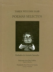 SAAB, Tarek William. Poemas selectos. Grabados de Antonio Samujdio. Bogotá: Ediciones Arte Dos Gráfico; Caracas: Fundación Esta Tierra de Gracia, 2005. 108 p. ilus. 17x24 p. Ilustraciones impresas y pegadas a las hojas del libro.