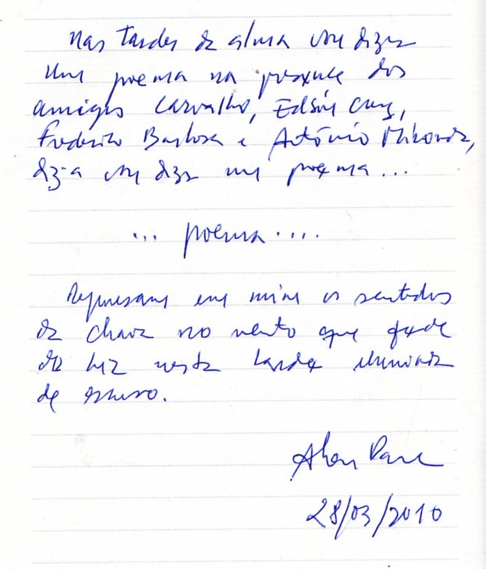 Caderno de Antonio Miranda com dedicatórias e textos poéticos de amigos coletados durante encontros literários de 2009 a 2012