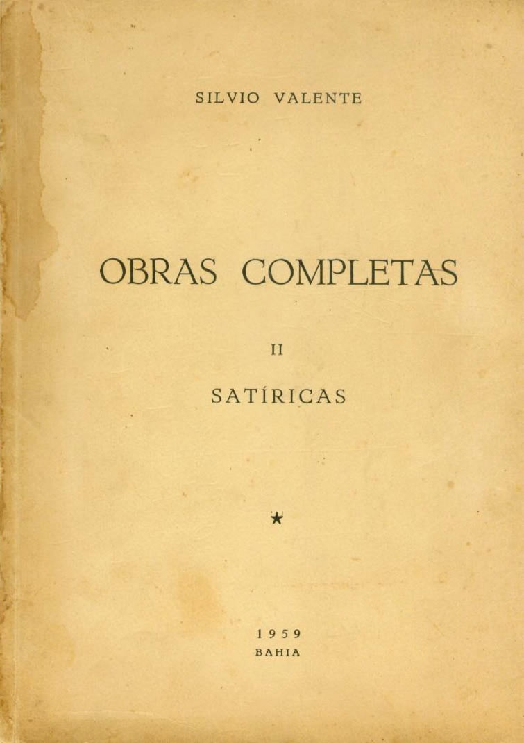 VALENTE, Silvio. Obras Completas. II - Satíricas. [Salvador] Bahia: S. A. Artes Gráficas, 1959. 190 p. 17x23,5 cm. “ Silvio Vicente “ Ex. bibl. Antonio Miranda