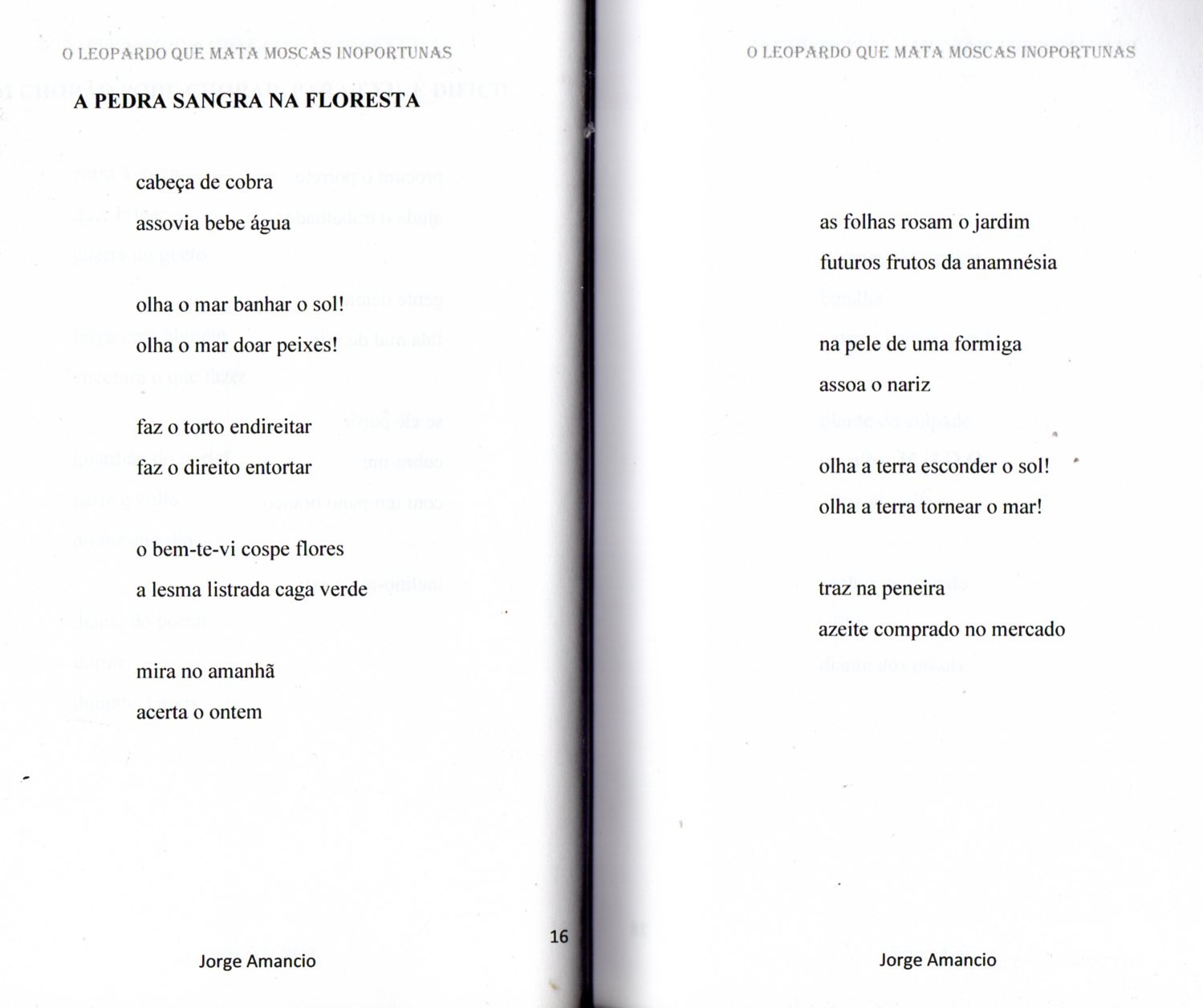 AMÂNCIO, Jorge. O Leopardo que mata moscas inoportuna (que não é haikai é oriki.) Coordenação editorial: Cristiane Sobral.Capa: Nelson Inocêncio. Diagramação: Stênio Pessoa (Design Midia Filmes).Brasília: Editora Aldeia de Palavras, 2023. 122 p. 15 x 21 cm.