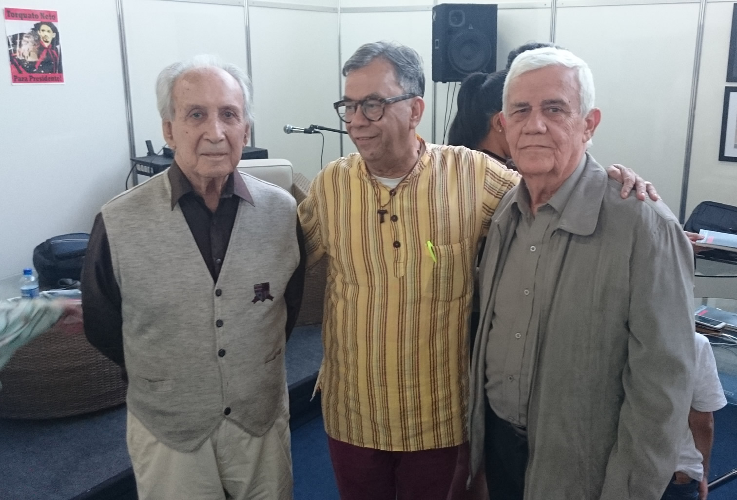 Reencontro dos poetas JOSÉ SANTIAGO NAUD, LUIS TURIBA e ANTONIO MIRANDA durante o 33a. Feira do Livro de Brasília, no dia 20 de junho de 2017, instalada no Shopping Pátio Brasil. Turiba era, na ocasião, o Curador do evento.