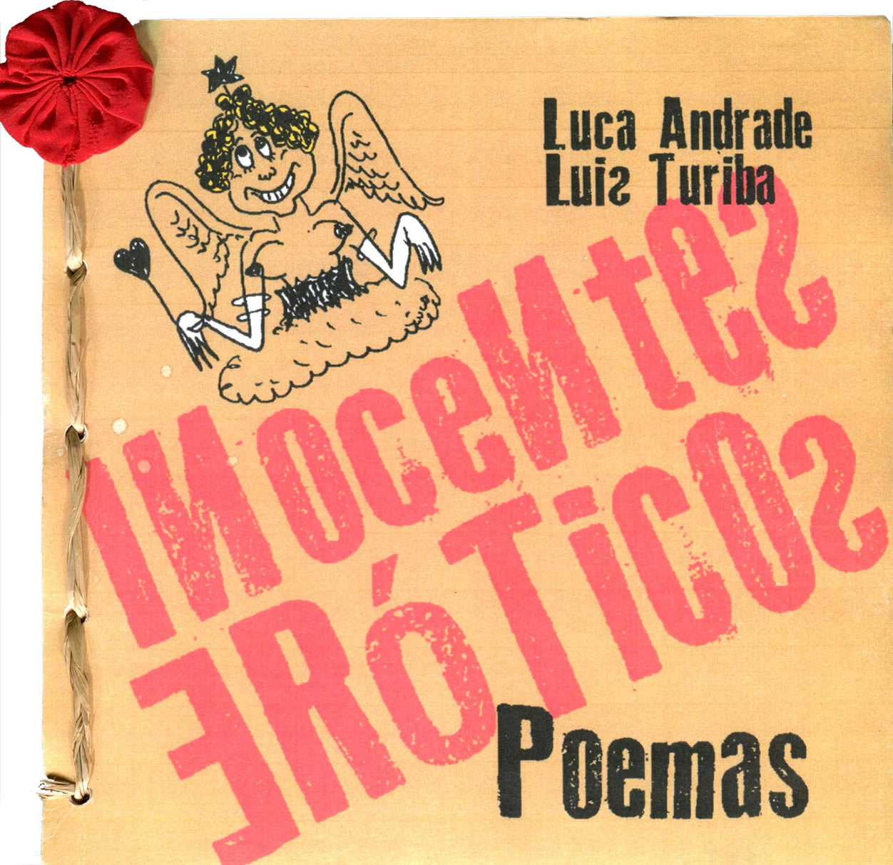 TURIBA, Luis; ANDRADE, Luca. Inocentes eróticos. Poemas. Rio de Janeiro: Edição e produção caseira; Tertulia Artesanato Cultural, 2015. 34 p. Capa: arte final de Alex Moraes, desenho de Zuca Sardang e tipologia de Toni Lucena sobre papel reciclato 240 gr. Ilustrações Tarciso Viriato, Alex Moraes. Papel artesanal. Tiragem: 30 exs. assinados pelos autores. “Luis Turiba” Ex. bibl. Antonio Miranda
