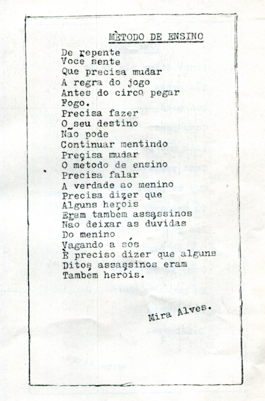 ALVES, Mira. Flor do cerrado. S.l.: edição mimeografada, s.d. s.p.[8 p.] 15x21 cm. Ex. bibl. Antonio Miranda