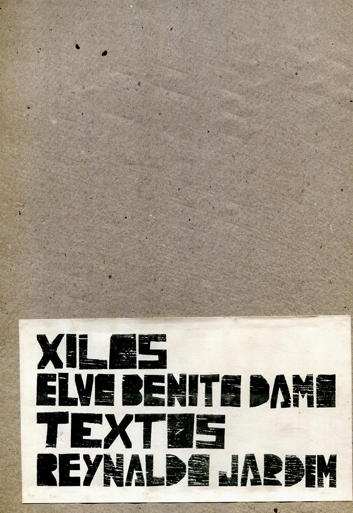[ JARDIM, Reynaldo ] Xilos Elvo Benito Damo. Textos Reynaldo Jardim. [Florianópolis, SC: 1979] Apresentação de Silvio Coelho dos Santos. Livro inconsútil (folhas soltas) em sobrecapa de papelão duro, incluindo xilogravuras e poemas. Formato: 22x34.5 cm. Tiragem: 500 exs., numerados e assinados pelo artista. Ex. col. Zenilton Gayoso.
