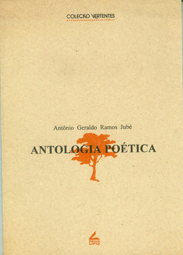 JUBÉ, Antonio Geraldo Ramos. Antologia poética. Goiânia: Editora da UFG, 1995. 133 p. (Colecção Vertentes) 13,5x19,5 cm. Projeto gráfico e capa: Soraia Kalil Guimarães. Col. Bibl. Antonio Miranda