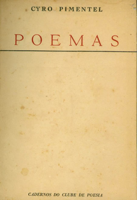 PIMENTEL, Cyro. Poemas. São Paulo: Clube de Poesia, 1948. 33 p. (Cadernos deo Clube de Poesia) “ Cyro Pimentel “ Ex. bibl. Antonio Miranda