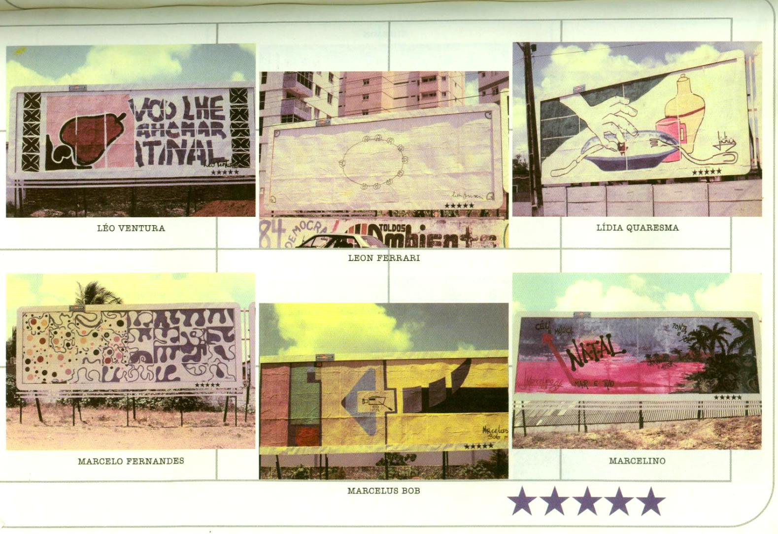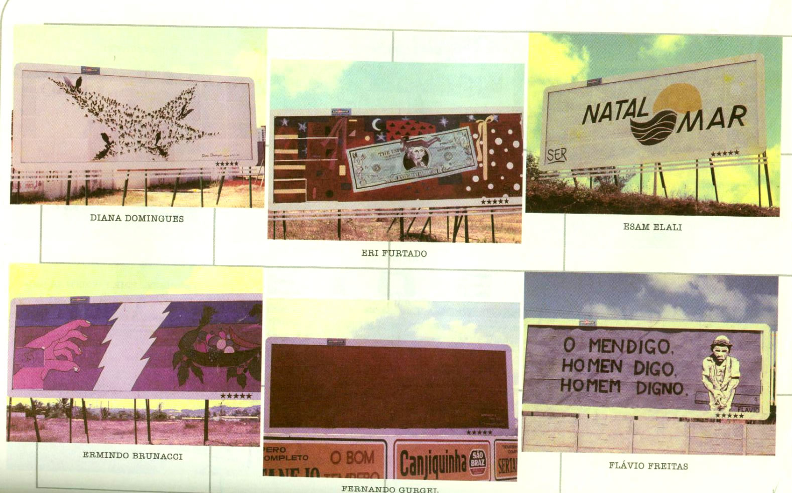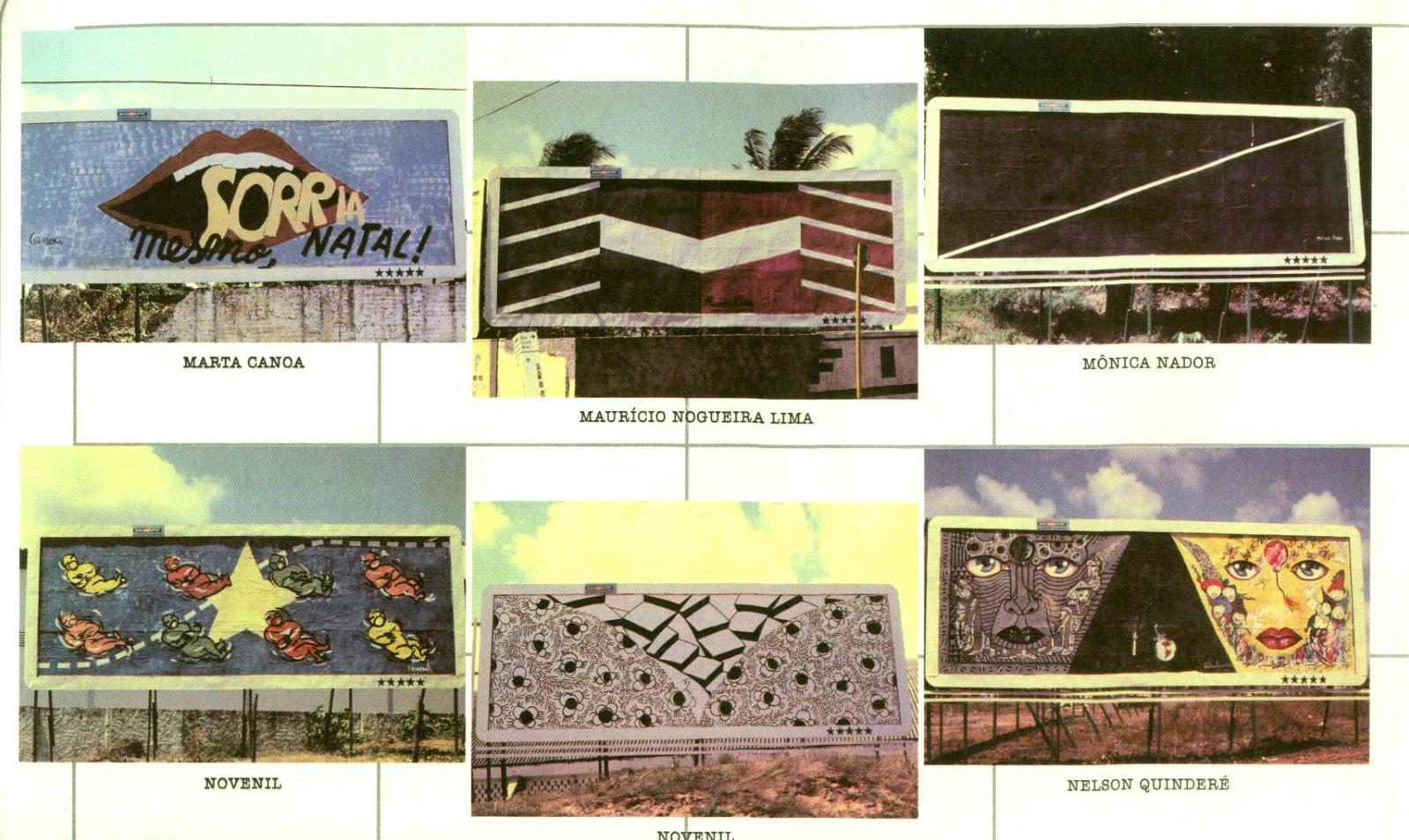 Em 1984 realiza-se a I Exposição de Artdoor “Natal em Natal” (temática aberta à criatividade), sob a coordenação da Equipe Brusque & Santiago, J. Medeiros, Ari Rocha, Novenil e Rose Marie, promovida pela Cooperativa de Artistas de Natal — COOARTE e Sertor de Multimidia do NAC/UFRN, com apoio da Prefeitura da Cidade do Natal e Bandeirantes Outdoors, inaugurando as instalações desta empresa. Anteriormente, fui procurado pela “Divulgadora”, primeira empresa do ramo a se instalar em Natal, mas a proposta do empresário era de uso de 1/3 de outdoors, de seu espaço visual de 9x3 m2, a ser destinado à publicidade, o que viria a causar tanto confusão na comunicação como o superfaturamento publicitário em cima do artista, que esta doando a sua obra efêmera à comunidade, dentro desta grande Galeria Urbana. Por outro lado, há de convir, na Artdoor, o uso consciente do espaço artístico, visto que a primeira condição material do outdoor é ser visto à distância, daí, quando impresso, o uso da retícula, técnica preconizada pelos neo/impressionistas. Esta Mostra reuniu mais de sessenta trabalhos de artistas plásticos e poetas visuais brasileiros. Do RN: Vicente Vitoriano, Fernando Gurgel, o LGrupHQ, J. Medeiros, Marcelus Bob, Afonso Martins, Black-Out, Marta Canoa, Iaperi Araújo, Flávio Freitas, João da Rua, entre outros; da Paraíba: Pedro Osmar, Raul Córdula, Ivan Freitas, Chico Pereira; do Rio de janeiro: Hamilton Viana; do RS: Diana Domingues; de Pernambuco: Bruscky & S antiago e Marício Nogueira Lima; de Sampa: Volpi, Cláudio T ozzi, Leon Ferrari, Júlio Plaza, Mônica Nador, entre outros.