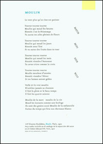 Piezas del acervo de la Biblioteca Nacional de España, Madrid, procedentes de Museo Nacional de Arte Reina Sophia de una muestra de 2001, con “poemas pintados” de creación original de Vicente Huidobro: “El Molino” y “Kaleidoscopio”.