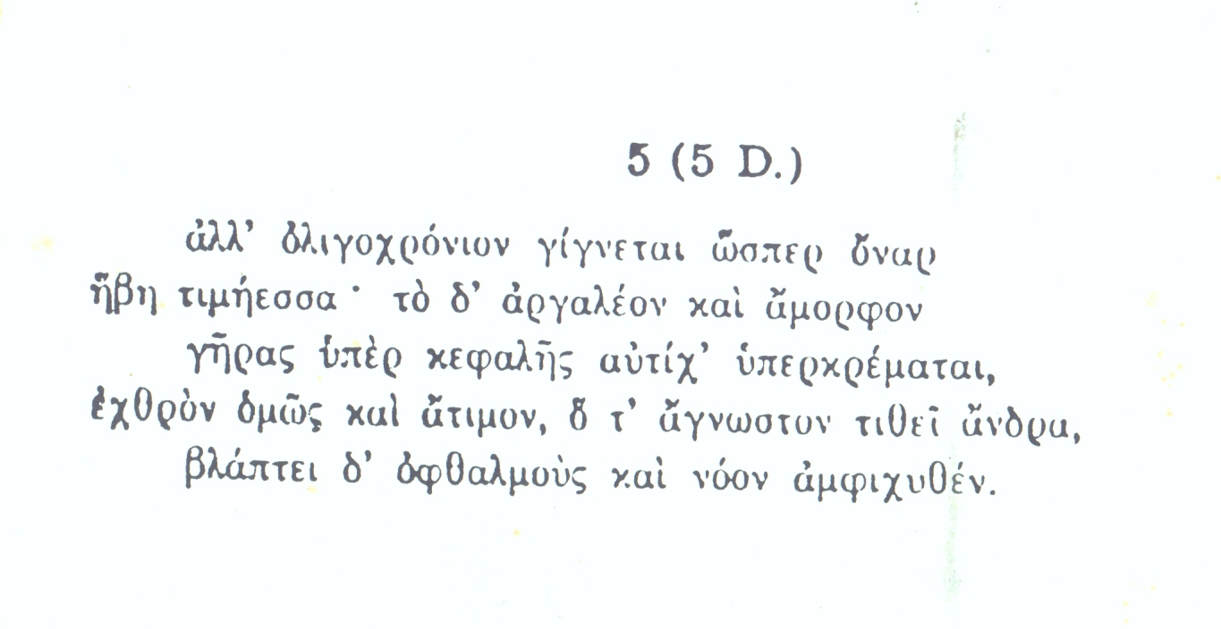 Plutarco registra uma resposta que Sólon (638 a.C. – 558 a.C. [carece de fontes]) deu a Mimnermo.[1]