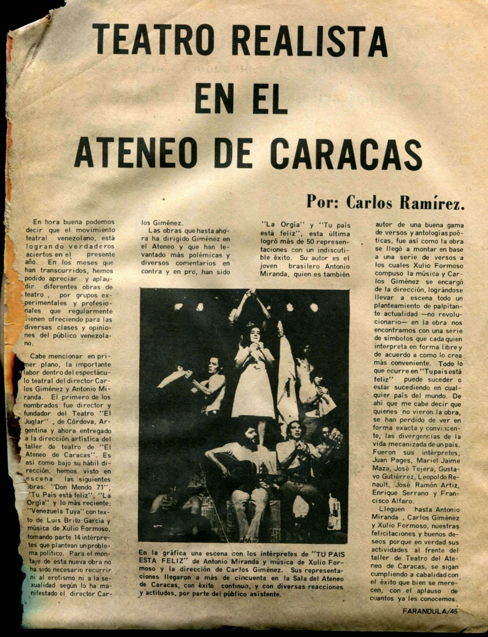 Reproduzimos o fac-símile do artigo de Carlos Ramírez, estampado na revista FARANDULA – Revista Nacional de Internacional de Espetáculos, Caracas, Noviembre de 1971, p. 45:
